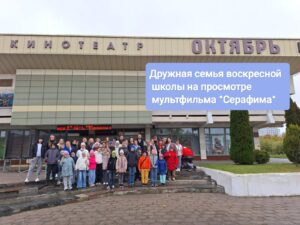 12 октября дружная семья воскресной школы прихода храма святого равноапостольного князя Владимира собралась для совместного просмотра замечательного мультфильма «Серафима» в кинотеатре «Октябрь»!